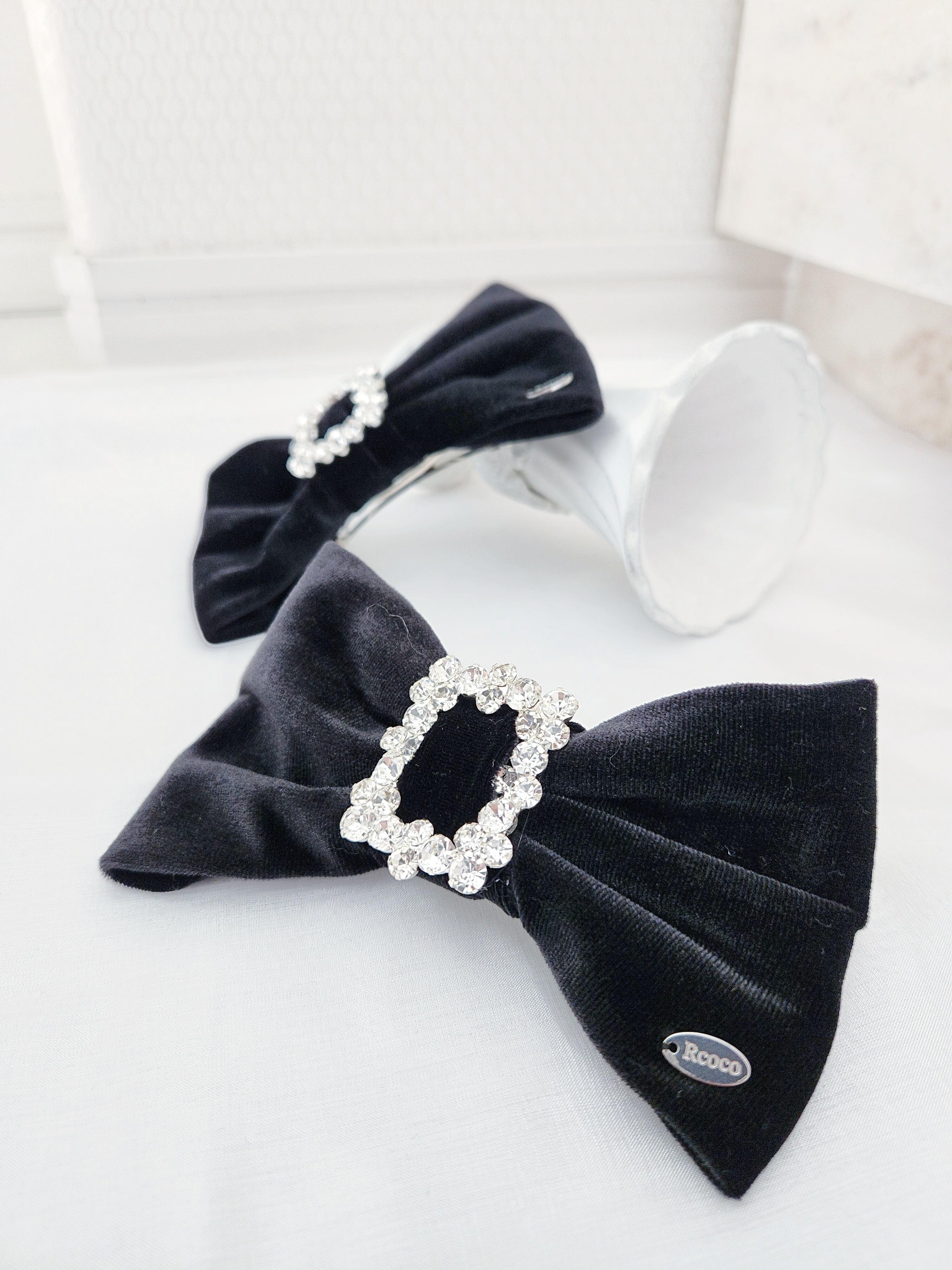 ベロアキラキラパーツつきバレッタは、ラグジュアリーなベロア素材と華やかなキラキラパーツが特徴のスタイリッシュなヘアアクセサリーです。光を受けて輝くデザインが、デイリーから特別なシーンまであなたのスタイルを一段引き立てます。