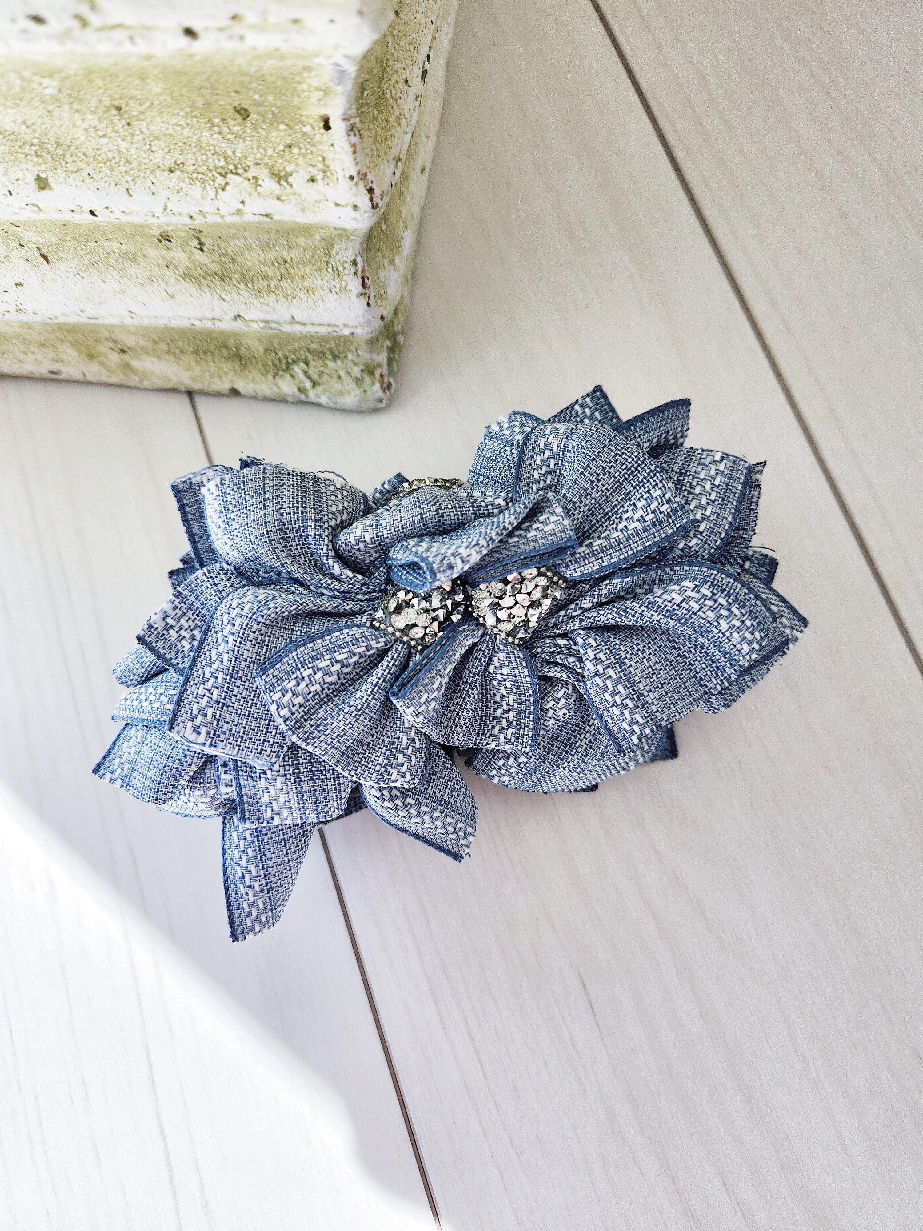 Seren by Rcocoのデニムカラーリボンは、華やかなデザインで存在感があり、コーディネートにアクセントを加えてくれます。